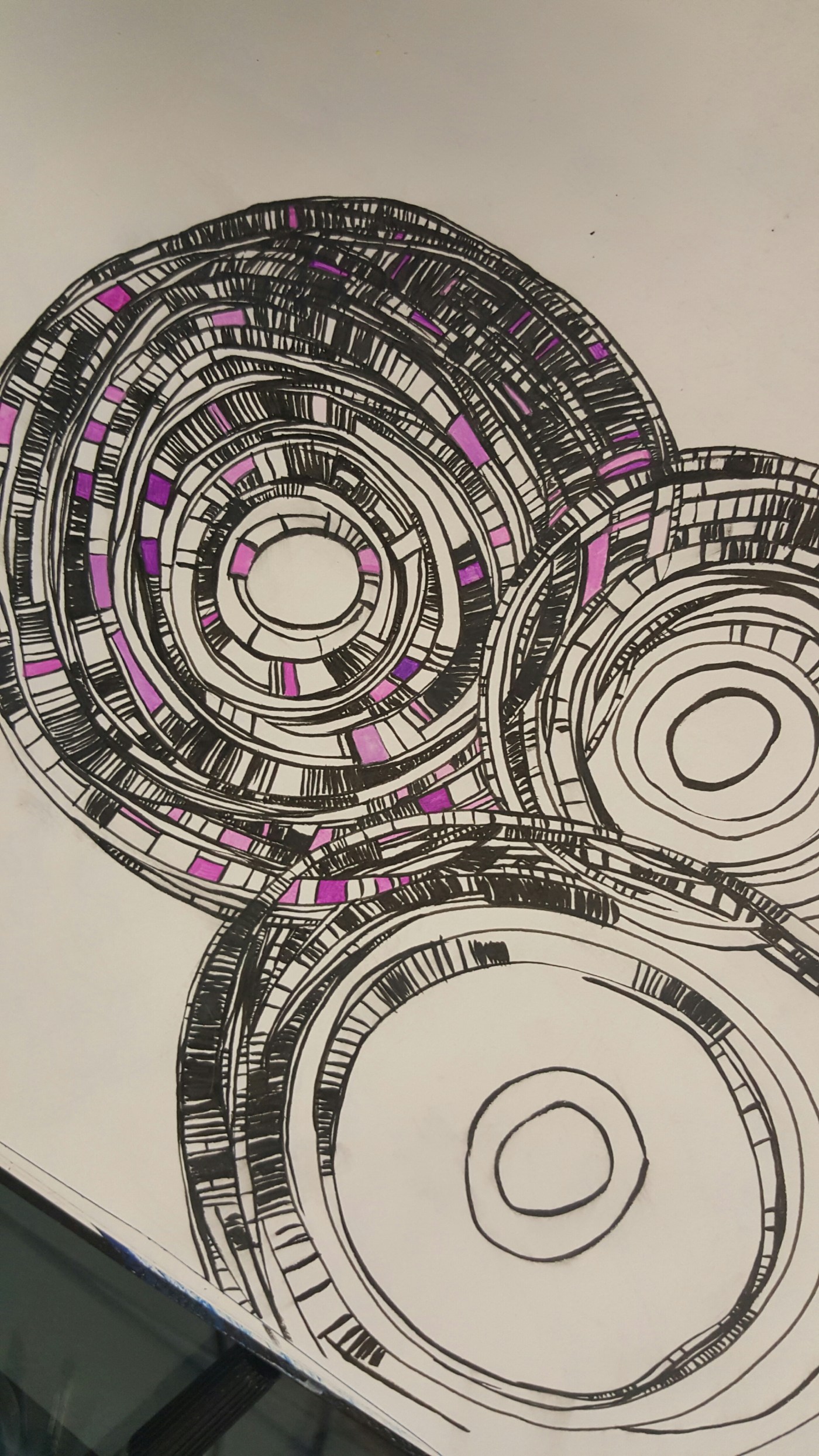 Anyway, this is what I was working on this morning. I like the idea of these interweaving mandalas,.. but maybe instead of black ink, I use a lot of different colors? Hmmm what do you think? I guess I can try a couple of different options. I’m going to cut a huge piece of my roll of 90 hot press watercolor paper for this. I want it to be really big and exciting.