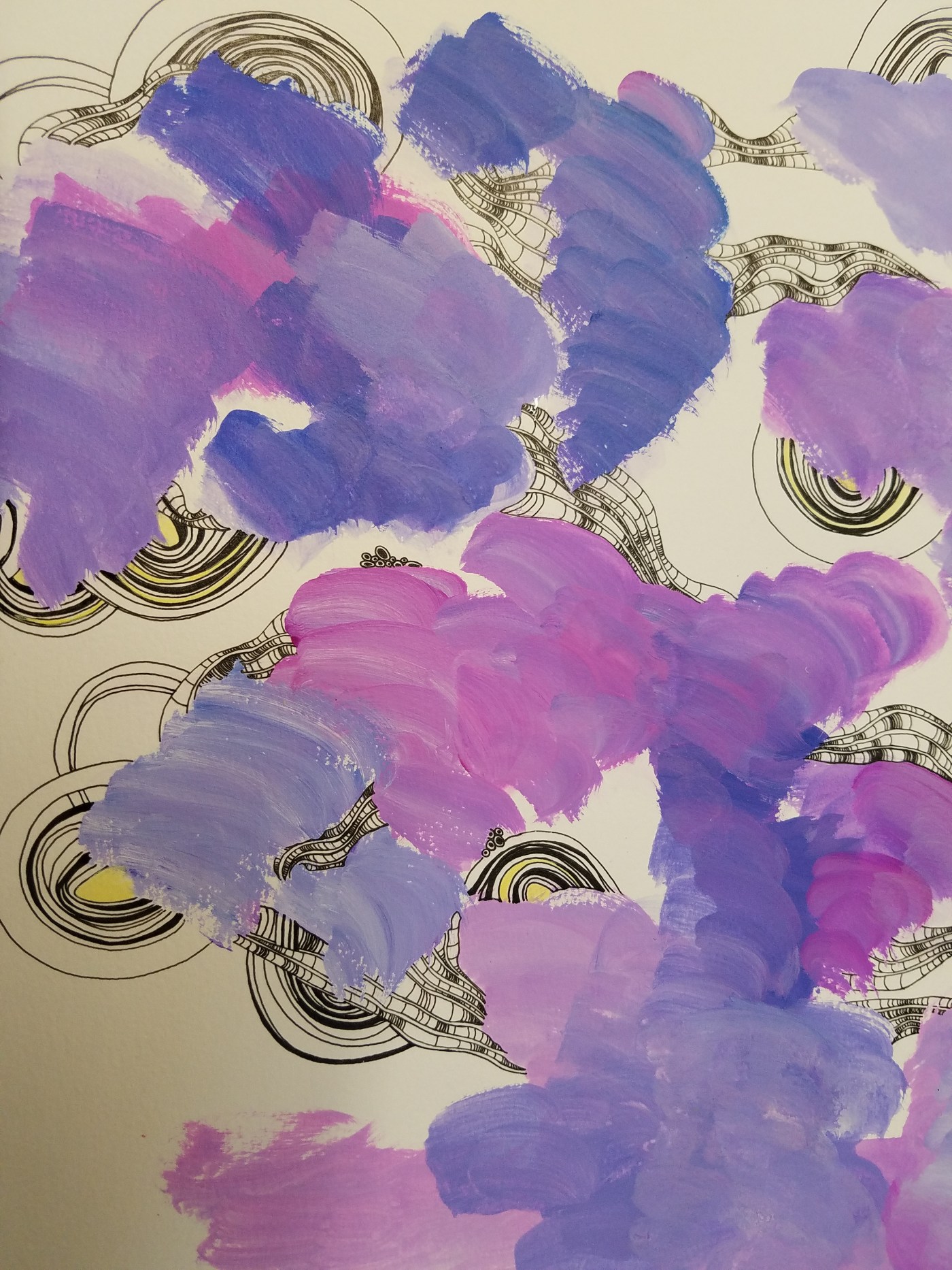 This is a new piece I’m working on. I’m using this lovely thick watercolor paper, acrylic paint and smooth black ink from Japan. I wanted to incorporate my tiny detailed lines with luscious paint color to give it a contrasting effect. I want to create more pieces with lots of color and depth. I’ll post it again when it’s finished!