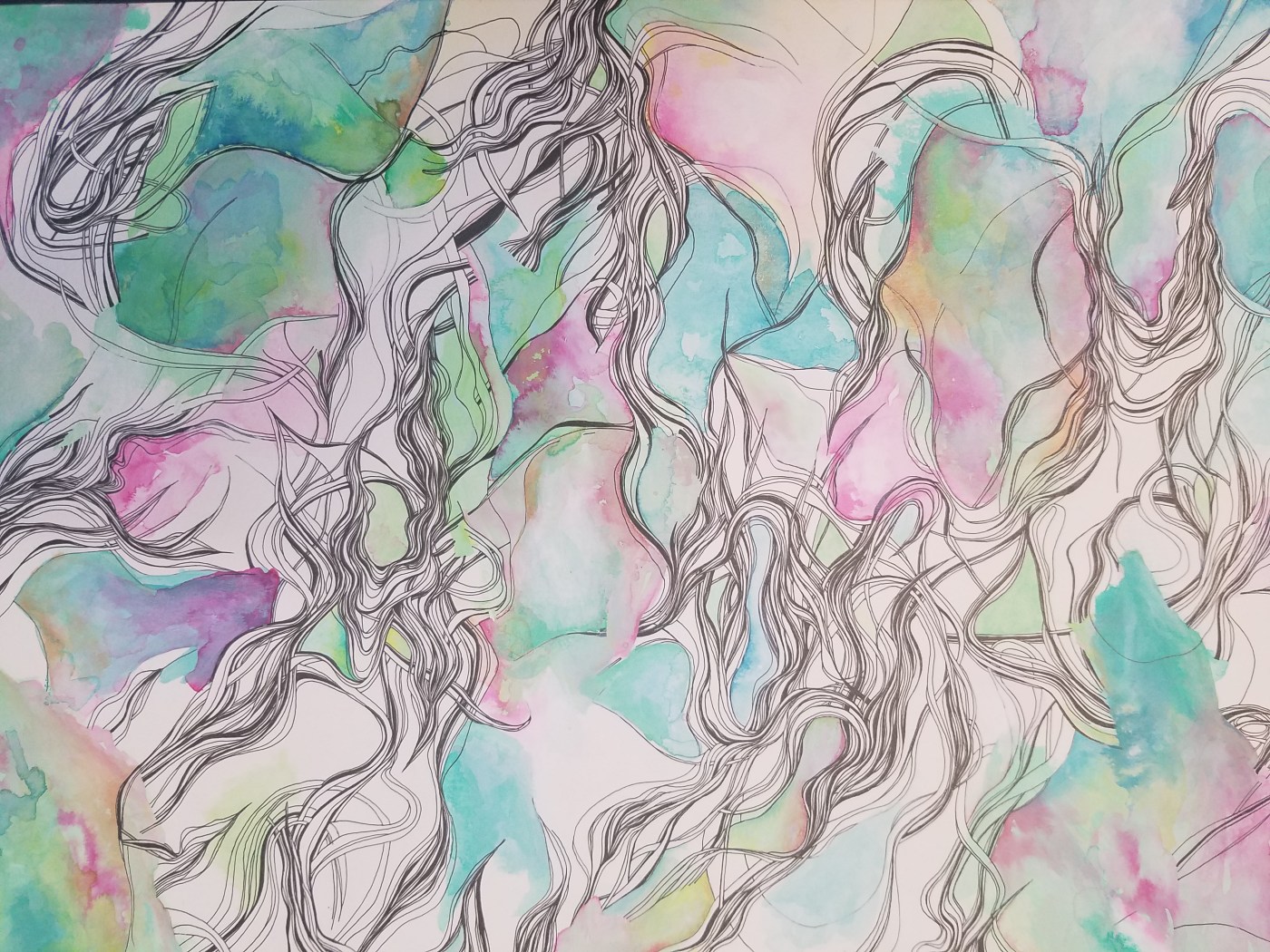 I attempted this piece awhile back. It’s sort of like what I have in my art journal, but for some reason feels really expected and not very exciting. I’m going to keep working on it though and adding a different feeling to it. It’s funny how sometimes being inspired by an earlier silly doodle doesn’t always lead to a piece looking the way I want it. Maybe it’s because of the effortless flow from art journal versus actually attempting to CREATE SOMETHING. Hmmm
