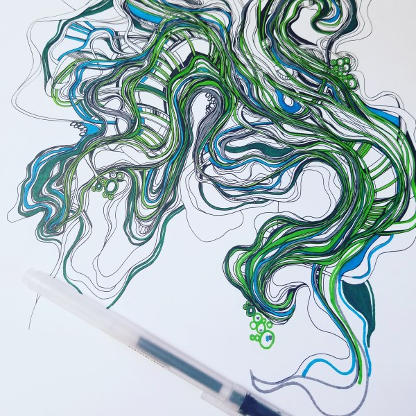 Here is something I am playing with in my art journal. I don’t know why I am so into these curvy lines lately. But they feel good to make, so I’m just going to go with it.